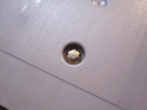 Falls sich eine kleine Flamme an der Spitze des Kugelschreibers entwickelt hat, diese auspusten und nun vorsichtig die Spitze auf die Schraube drücken.